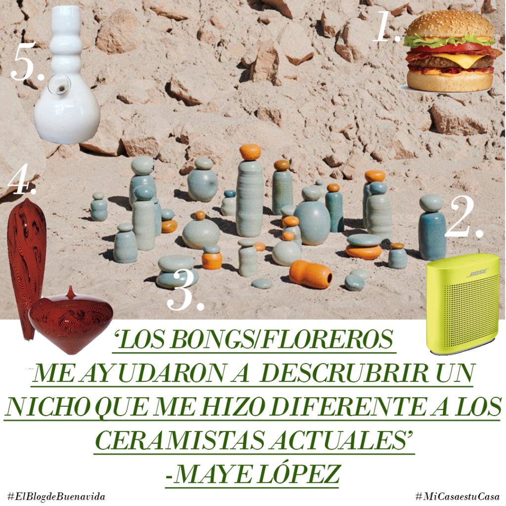 Maye López es espontánea, relajada, simpática y su sonrisa llena de luz los lugares que visita. Su vida ha estado ligada al diseño desde que decidió estudiar interiorismo, aunque cambió la escuadra y el cartabón por la arcilla y el torno para dedicarse de lleno a la fabricación de objetos de cerámica. Moreliana afincada en Guadalajara, su primera casa es su taller. Es ahí donde pasa la mayoría de su tiempo ideando, diseñando, trabajando y enseñando el oficio de la alfarería desde un acercamiento contemporáneo. Sus piezas son utilitarias a la misma vez que decorativas y sus manos nunca están quitas: bongs, pipas, platos, tazas, floreros y hasta piezas artísticas se hornean día con día en Mayeceramic